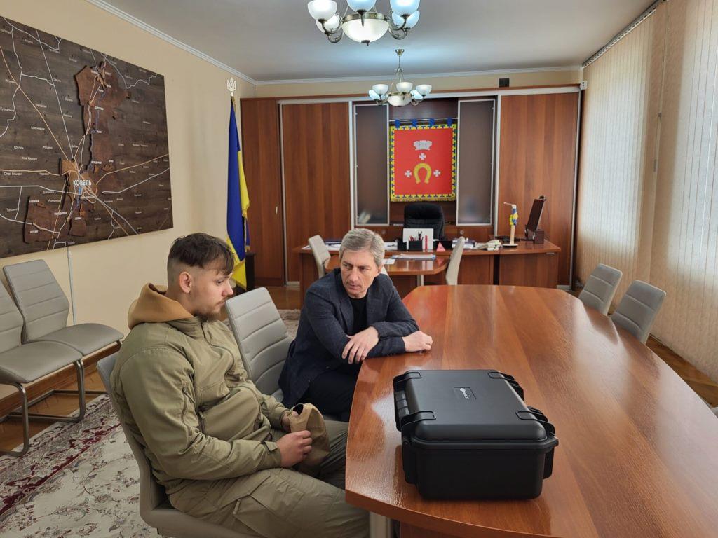Зараз хлопець приїхав у відпустку. І ми аж ніяк не могли його відпустити з порожніми руками. Ковельський міський голова Ігор Чайка передав командиру інженерно-саперного взводу DJI Mavic 3T.