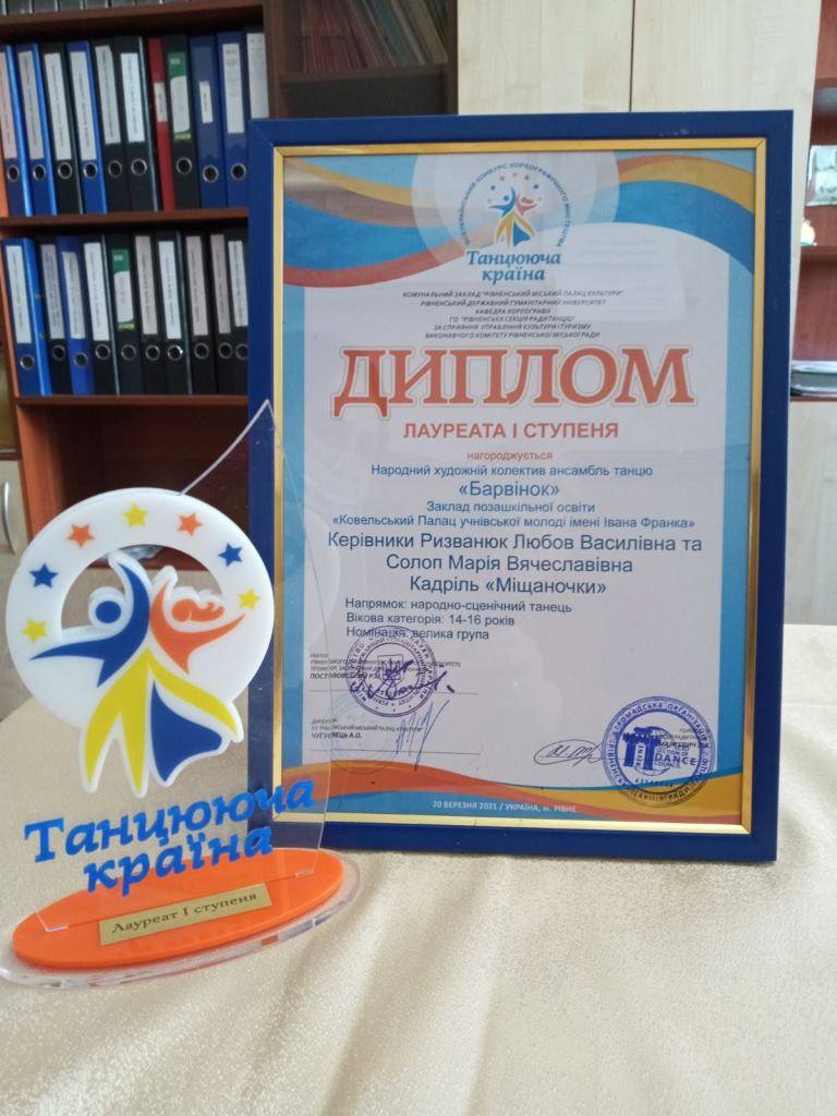 У березні в Рівному відбувся Всеукраїнський фестиваль-конкурс хореографічного мистецтва “Танцююча країна”. Народний художній колектив ансамбль танцю “Барвінок” Ковельського Палацу учнівської молоді, який взяв участь у цих творчих змаганнях, за оцінками журі став лауреатом І премії.