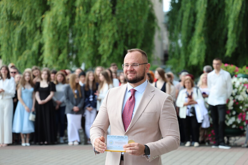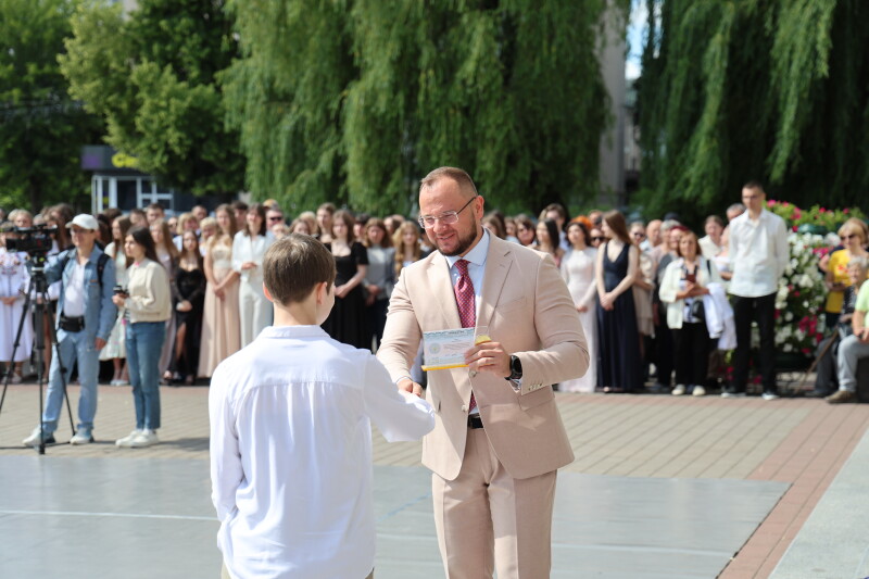 “Сьогодні розпочинається новий етап вашого життя, не менш відповідальний. Тут зібралися ті випускники, які були найбільш старанними, дисциплінованими та працьовитими. Якщо ви збережете ці якості та вміння у своєму житті, то ви обов’язково будете успішними. Сьогоднішня церемонія – це не просто захід, а визнання тих, хто не зупинився перед труднощами життя, у тому числі, і перед труднощами воєнного часу. Дякую вчителям, які передавали знання, які ділилися з вами своєю життєвою мудрістю, віддавали вам частинку своєї душі. Дякую батькам за те, що були наставниками, вірили в своїх дітей. Дякую випускникам за старання та знання, які обов’язково знадобляться у житті. На жаль, останні ваші шкільні роки минули в умовах повномасштабного вторгнення, під звуки тривог, в складний період для нашої держави. Дякую усім військовим та Збройним силам України за те, що цей день ми можемо провести тут, на площі нашого міста, у відносно спокійній мирній атмосфері. Бажаю вам, шановні випускники, щоб наступні ваші життєві кроки були у мирній, щасливій та успішній Україні. Нехай Бог вас береже. Переможного миру і благословіння Україні”, – зазначив міський голова.