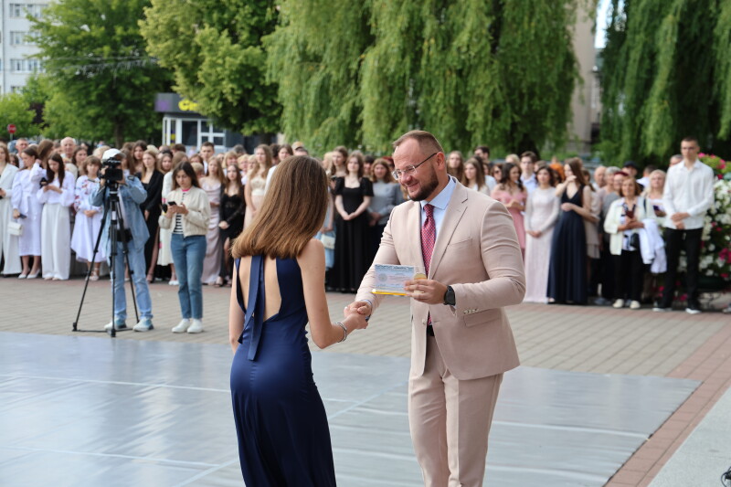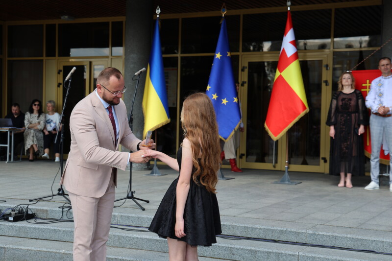 Театральний майдан Луцька сьогодні став центром важливої події – вручення кращим випускникам шкіл свідоцтв з відзнакою. Сьогодні тут зібралися ті, хто у неймовірно складному марафоні під назвою “шкільне навчання”, зуміли прийти до фінішу першими. Це не лише урочистий захід, а й визнання важливих успіхів наших випускників, які не зупинялися перед жодними викликами, у тому числі і під час складних умов воєнного часу.