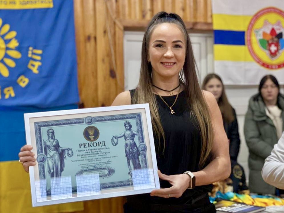 Із цією почесною відзнакою боксерку привітали представники Національного Реєстру Рекордів України, рідні та друзі, а також голова регіонального відділення НОК України Григорій Недопад.