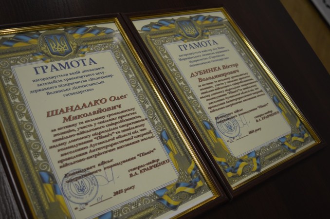 “Лісівники – надзвичайно потужна сила. Говорю це від щирого серця. Так само щиро дякую за те, що наша армія ніколи не має відмови від лісівників, коли виникає потреба у деревині для побудови бліндажів, коли необхідне паливо. Завжди є сприяння від лісівників і в розвитку в Україні національно-патріотичного виховання”, – зазначив Вадим Ніколайчук та вручив нагороди Олегові Шандалку та Віктору Дубинці.