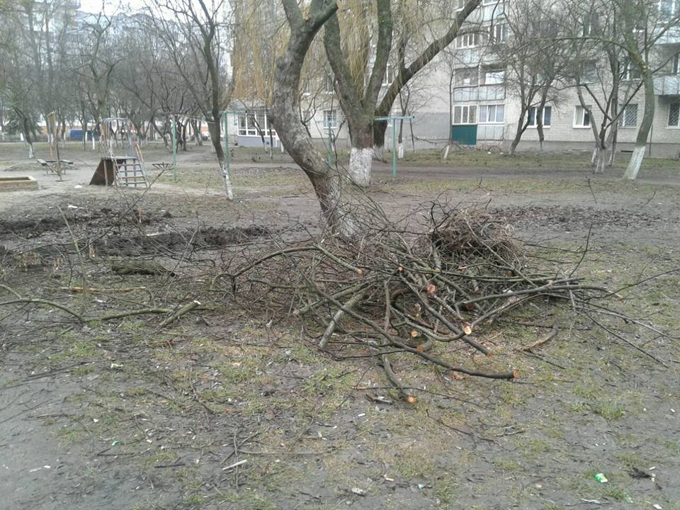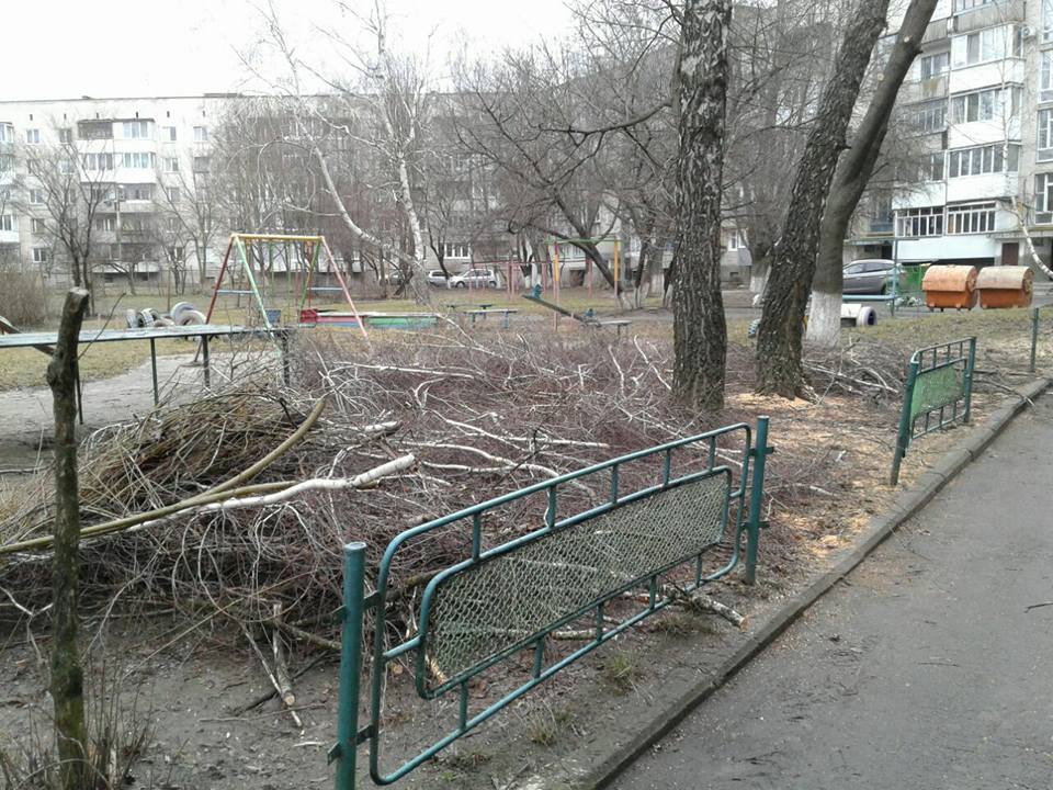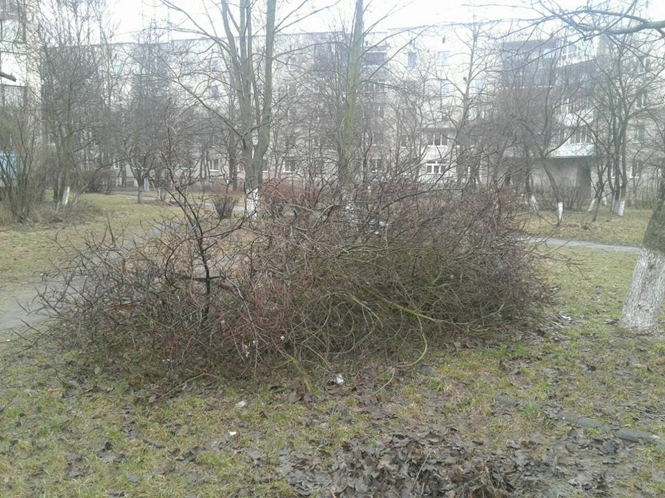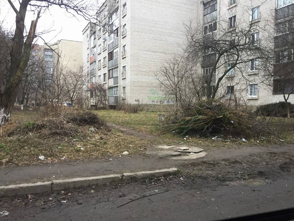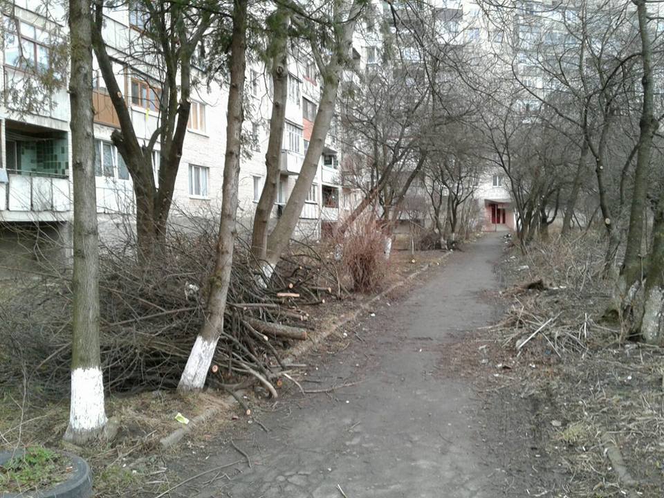 Натомість, зрізавши дерева, вони чомусь “забувають” прибрати гілля за собою. Найчастіше, відрізаний матеріал лежить просто під деревами, а подекуди й під ногами перехожих просто на тротуарах чи займає всю прибудинкову територію.