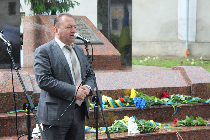 Присутні хвилиною мовчання вшанували загиблих під час згаданих подій та поклали квіти до пам’ятного знаку.