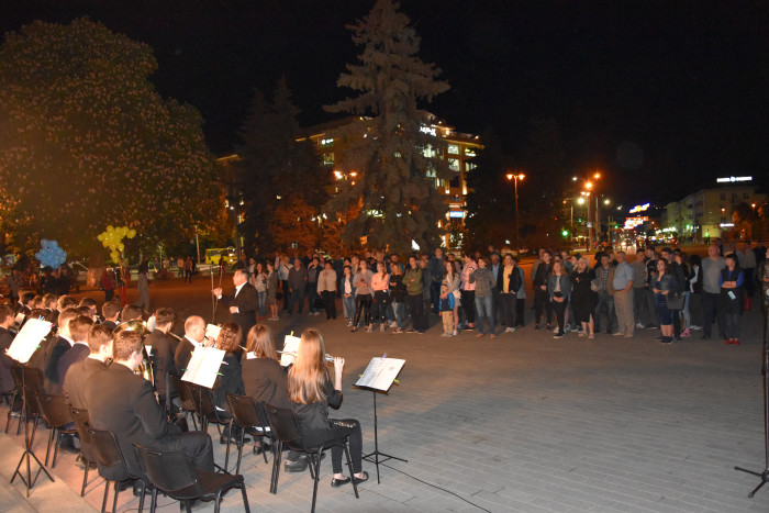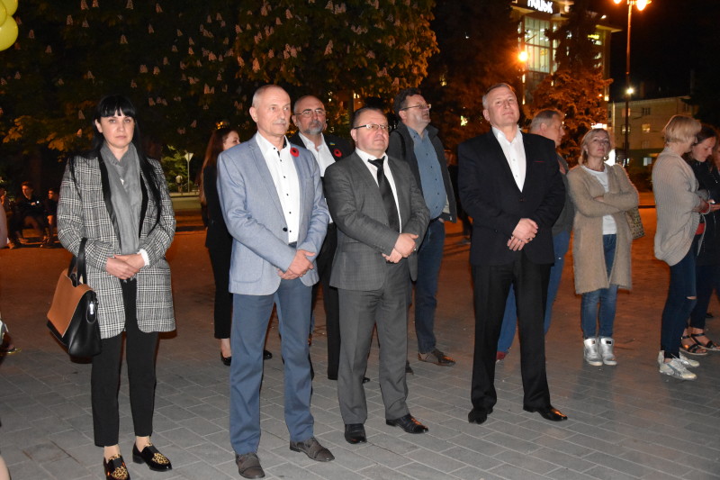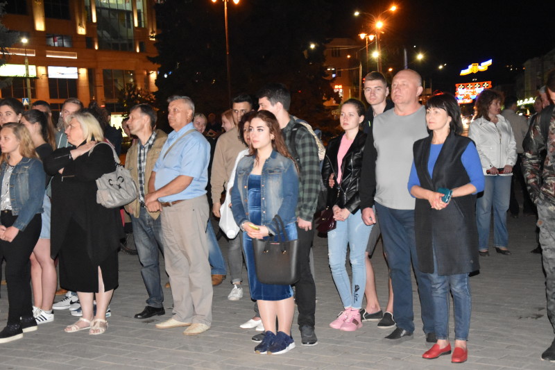 О 23:01 на центральному майдані міста оголосили “Першу хвилину миру” (саме у цей час за Актом про беззастережну капітуляцію Німеччини було проголошено припинення вогню). У вечірнє весняне небо полетіли символічні жовті та сині кульки пам’яті про загиблих під час війни.