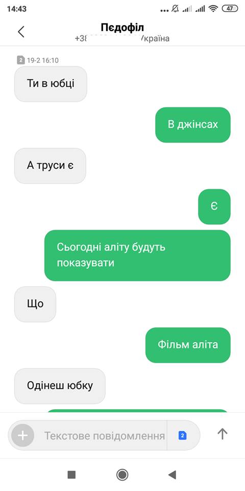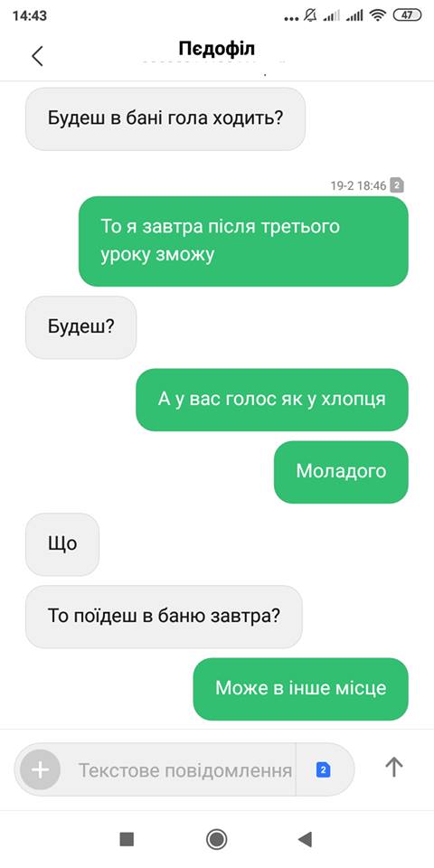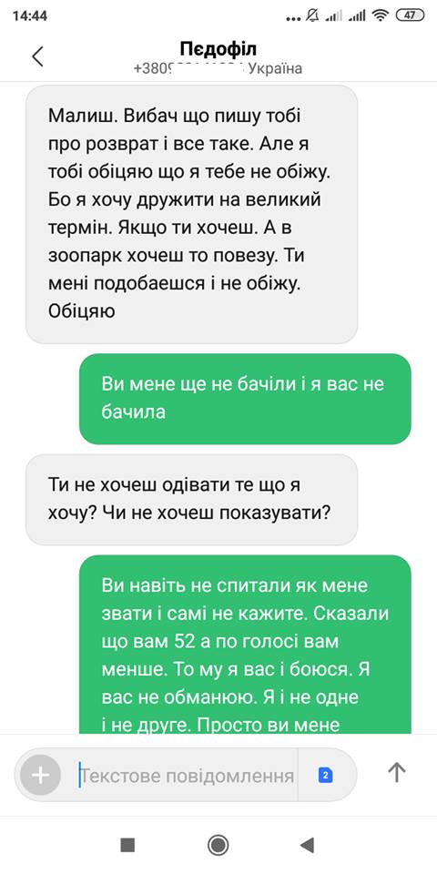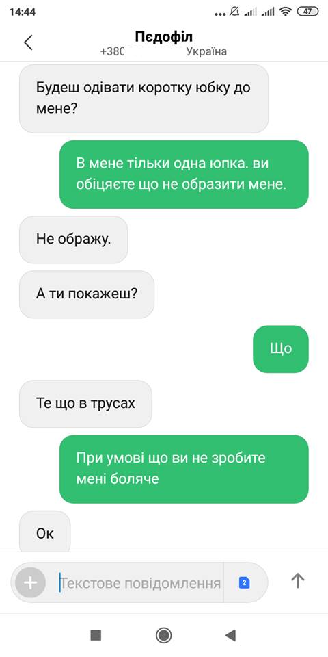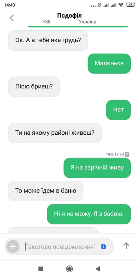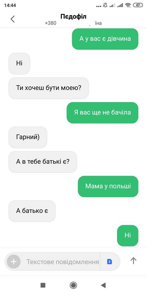О Боже і поліція, ще каже що доказів мало, та тут вистачить. Якщо я не помиляюсь то це розбещення.. А якби він справді переписувався з дівчинкою… З якою ніхто не вів бесід, що є педофіли, збоченці, маньяки. Зараз таких людей багато, та багато хто не сидить за гратами. Хотілось би що всі ті не нормальні сидіти і отримали своє