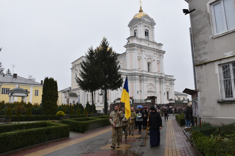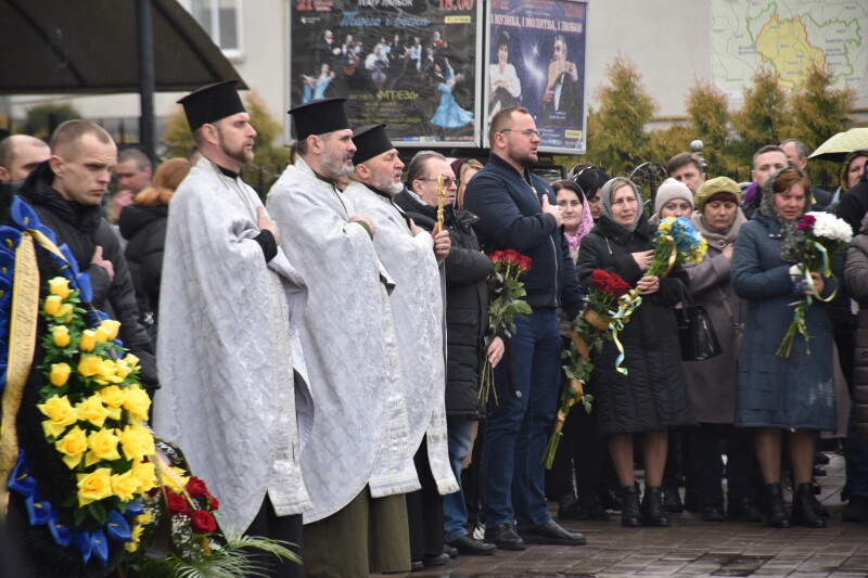 Після завершення панахиди домовину з тілом Героя під звуки дзвонів прощальною ходою пронесли Театральним майданом. Біля фотостенду “Герої Небесної Сотні – Загинули за єдність України” скорботна процесія зупинилася і виконала Державний Гімн.