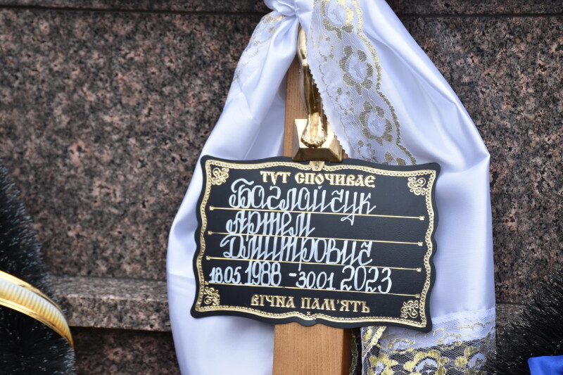 “Дорога скорботна родино, ще раз прийміть наші щирі співчуття. Це велике горе для вас і для нас. Ваш Артем належить до тих славних людей, яких ми називаємо захисниками України. На превеликий жаль, на вівтар миру наші захисники кладуть свої життя. Вони йдуть на війну не заради слави, величі, а заради того, щоб захистити свою родину та рідну землю. І за це ми, припадаючи перед ними до землі, станемо навколішки і промовимо: “Герої не вмирають! Вічна вам пам’ять і Царство Небесне”, – сказав у скорботній промові протоієрей Микола Нецькар.