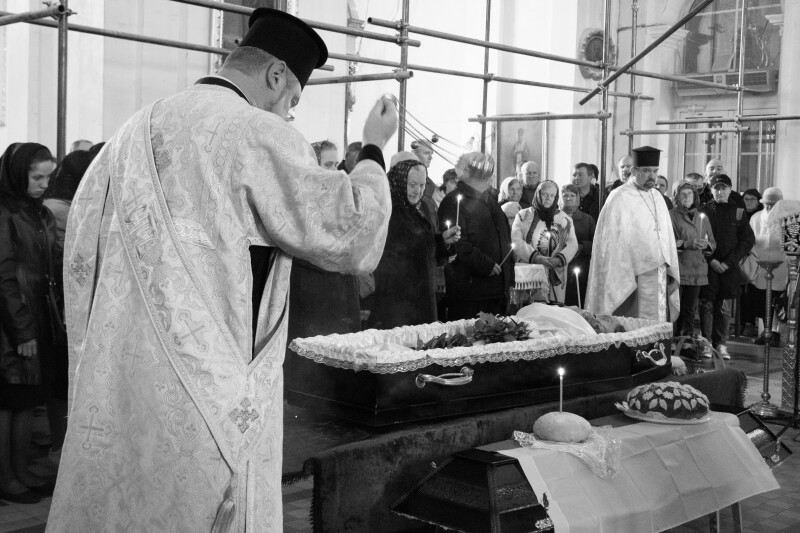 Після завершення панахиди домовину з тілом Героя прощальною ходою пронесли Театральним майданом. У цей момент лучани, віддаючи останню шану загиблому, утворили живий коридор і прихилили коліна перед захисником. Біля фотостенду “Герої Небесної Сотні – Загинули за єдність України” скорботна процесія зупинилася і виконала Державний Гімн.