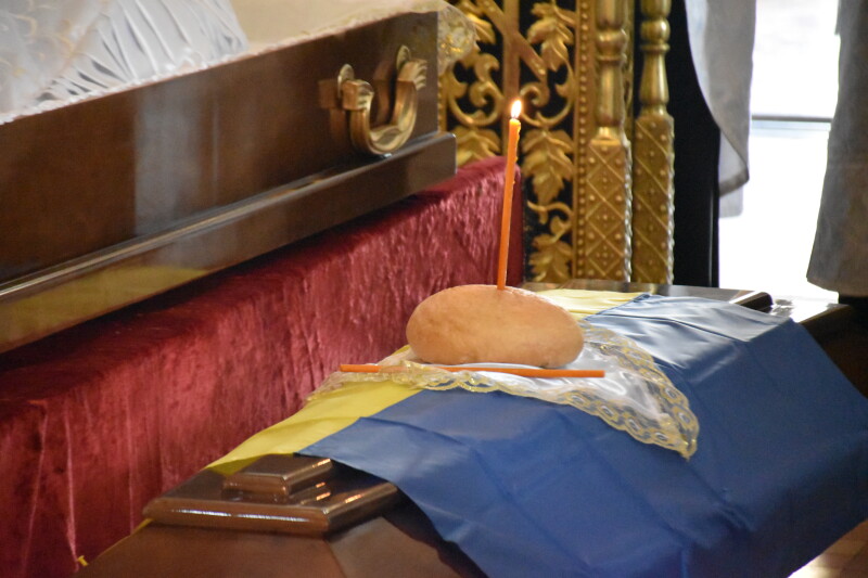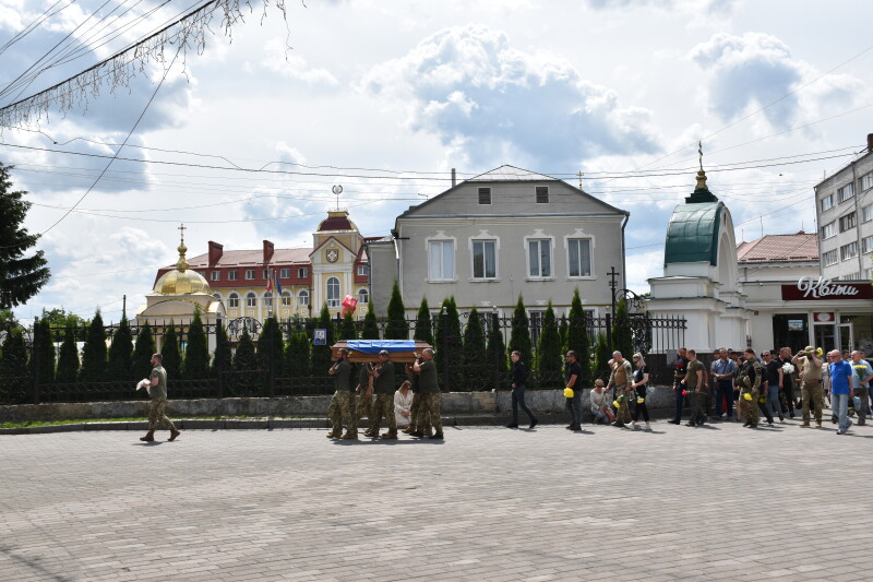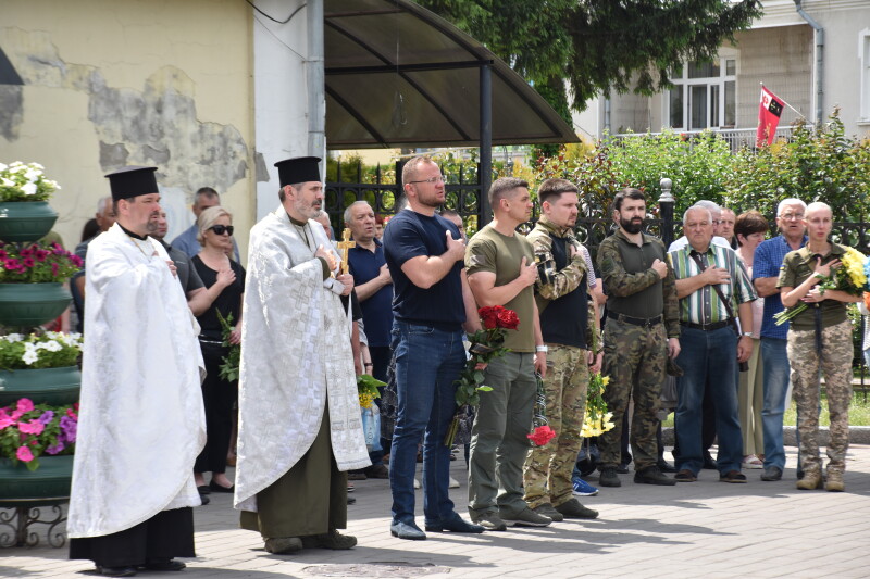 Після завершення панахиди домовину з тілом Героя прощальною ходою пронесли Театральним майданом. Біля фотостенду “Герої Небесної Сотні – Загинули за єдність України” скорботна процесія зупинилася і виконала Державний Гімн.