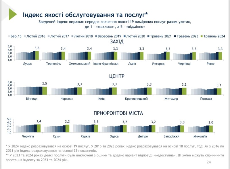 Луцьк у цьому рейтингу вчергове зайняв перше місце в Україні з індексу якості обслуговування та послуг, що визначений на основі 19 показників.