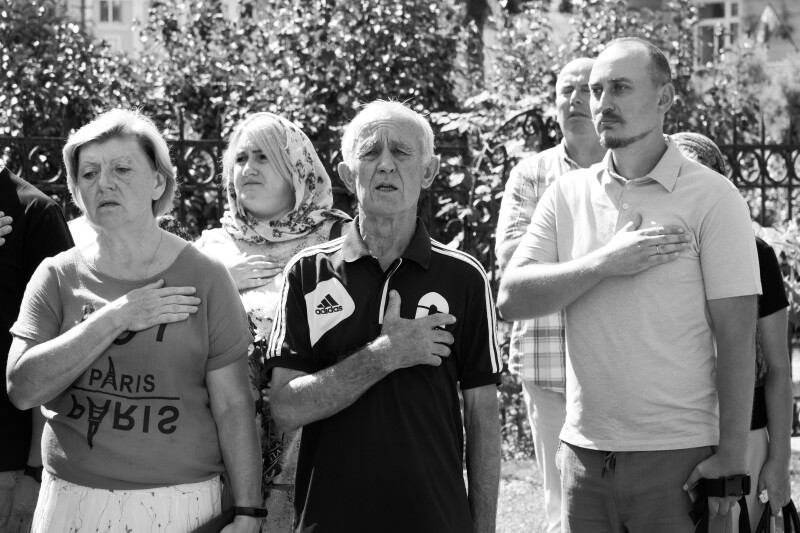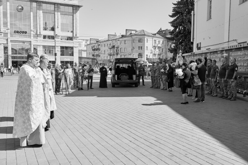 Після богослужіння процесія з труною вийшла з храму на Театральний майдан, де вже зібралося чимало лучан. Перехожі зупинилися, схилили голови і зі сльозами на очах провели армійця в останню дорогу. Церемонія прощання з Героєм завершилась виконанням Гімну України.
