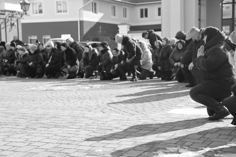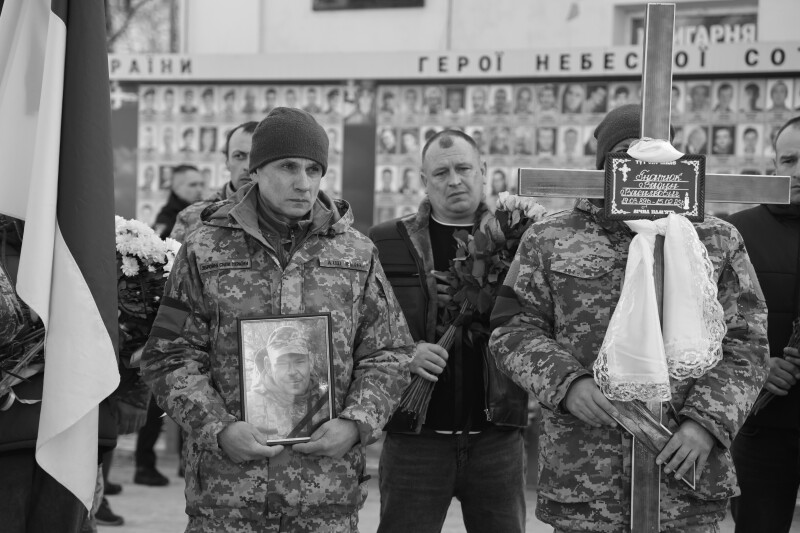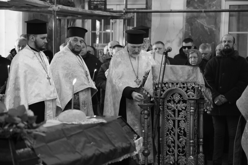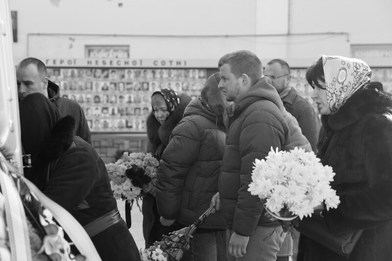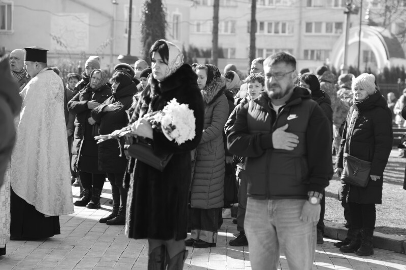 Після закінчення богослужіння труну з тілом захисника пронесли Театральним майданом. Біля пам’ятного фотостенда загиблим Героям траурна процесія зупинилася і виконала Державний Гімн.