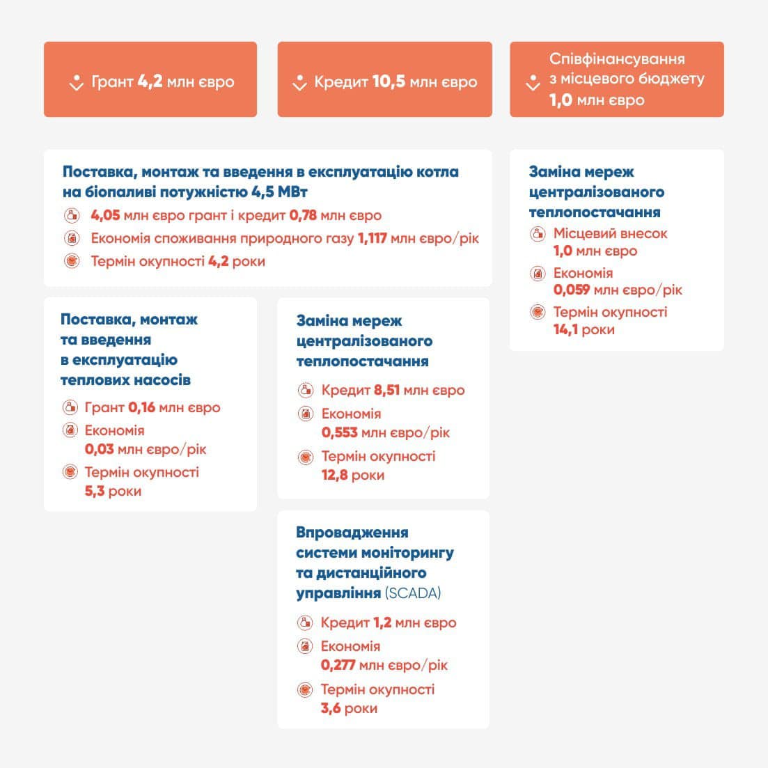 Фінансування другої фази Проєкту модернізації централізованого теплопостачання Луцька в рамках RLF на суму 15,7 мільйона євро буде спрямоване на заміну зношених теплових мереж, будівництво твердопаливної котельні, встановлення теплових насосів, влаштування системи моніторингу та дистанційного управління SCADA.