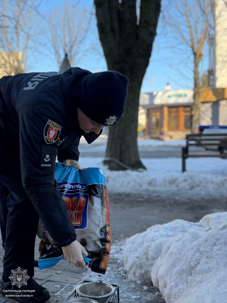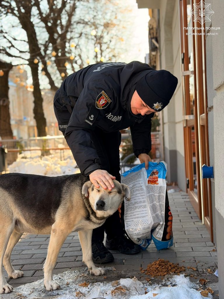 3 лютого інспектори відділу звʼязків із громадськістю міста Луцька подбали про безпритульних собак і котів.