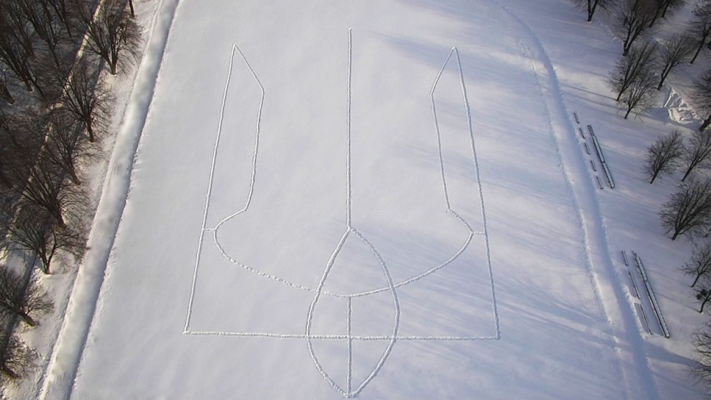 Луцькі прикордонники підтримали ідею нацгвардійців, які на снігу намалювали державний символ, та створили на футбольному полі свій тризуб.