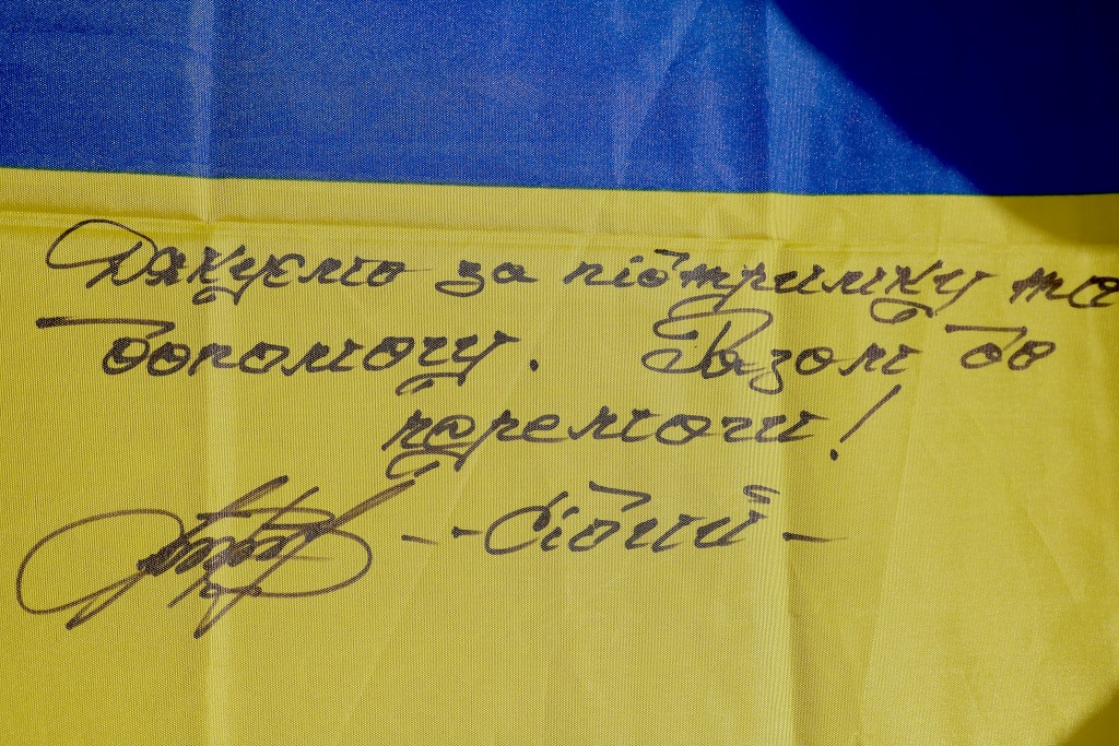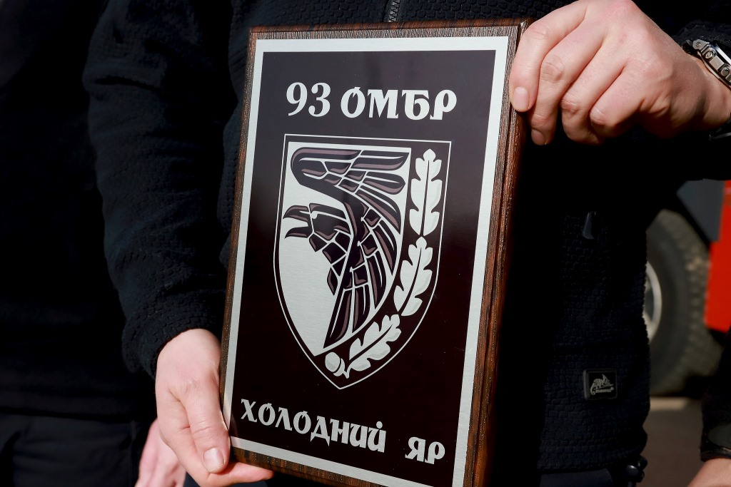 Захисники 93 ОМБр «Холодний Яр» передали рятувальникам український прапор з підписами, словами подяки і побажаннями, а також гравертон із зображенням бойового знамена бригади.