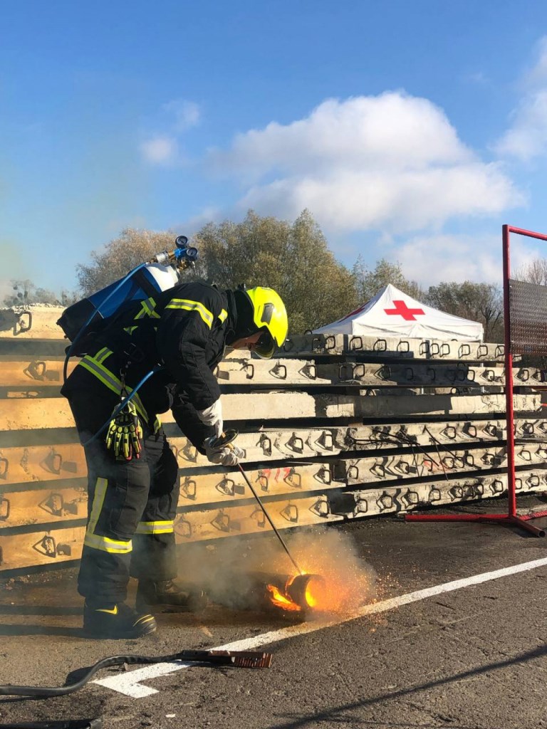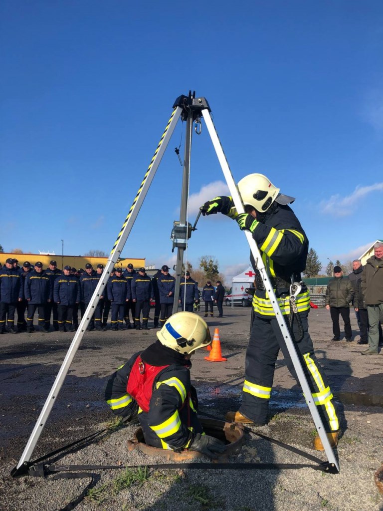Також тренувались гасити пожежі спеціальними сучасними пристроями, що подає воду навіть через металеві конструкції під надзвичайно високим тиском.