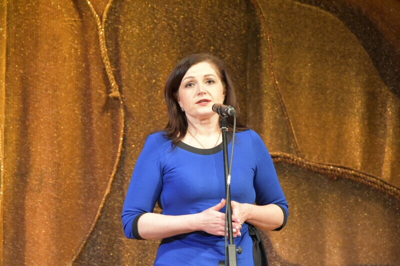 Колишня випускниця Луцького педагогічного училища, а нині заступник міського голови Ірина Чебелюк прийшла до театру, аби привітати своїх колишніх викладачів та колег.