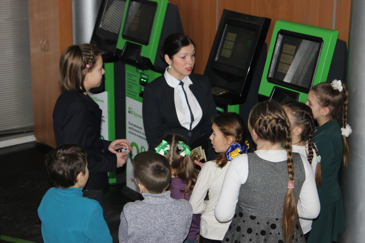 Компаніями школярів у відділеннях “ПриватБанку” вже нікого не здивуєш. Діти з радістю приходять сюди, щоб побачити, як працює фінансова установа, познайомитися з роботою банкірів і навіть спробувати себе у цій ролі. Для когось такі заходи – просто цікаве дозвілля, а хтось після екскурсії до банку може визначитися з майбутньою професією.
