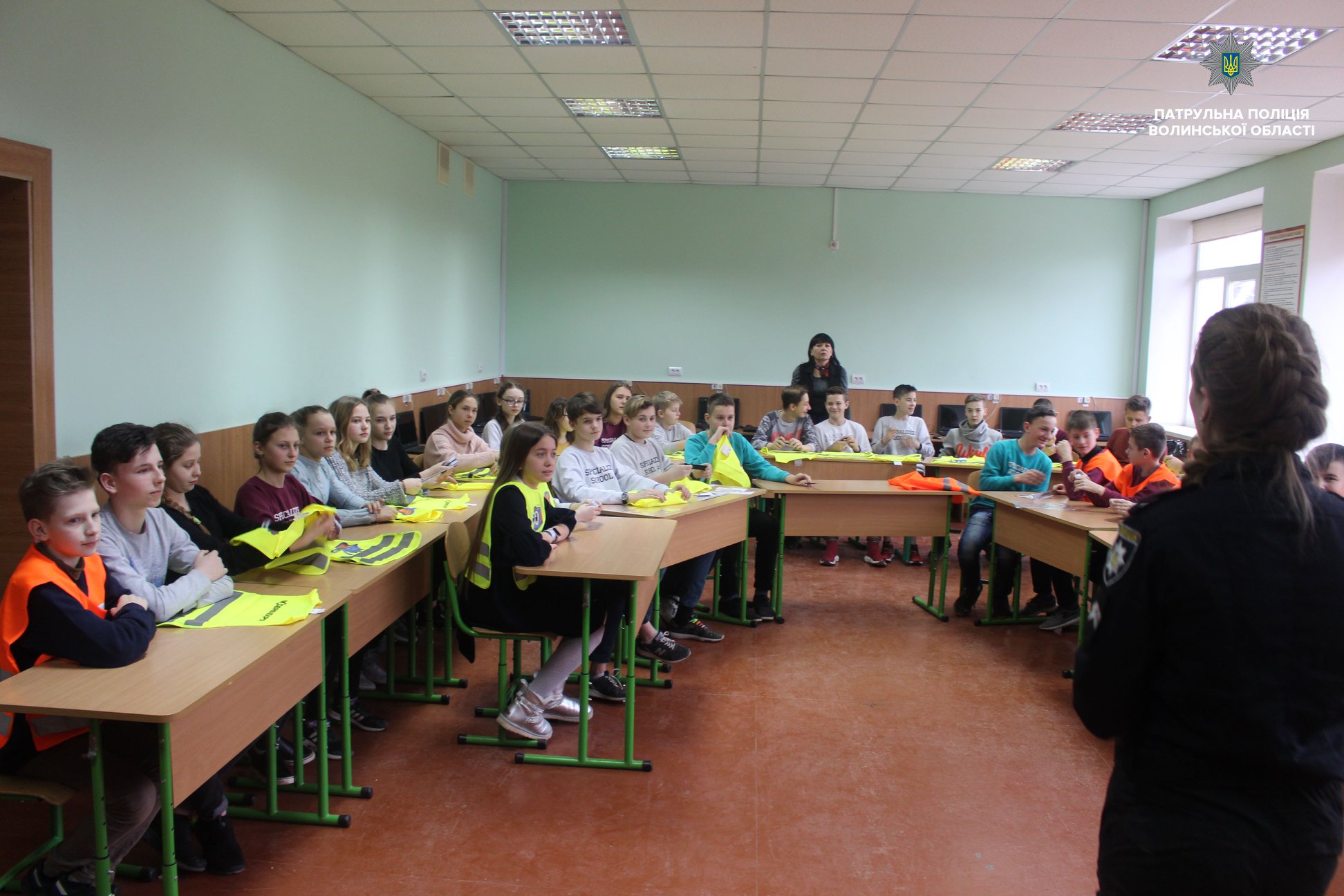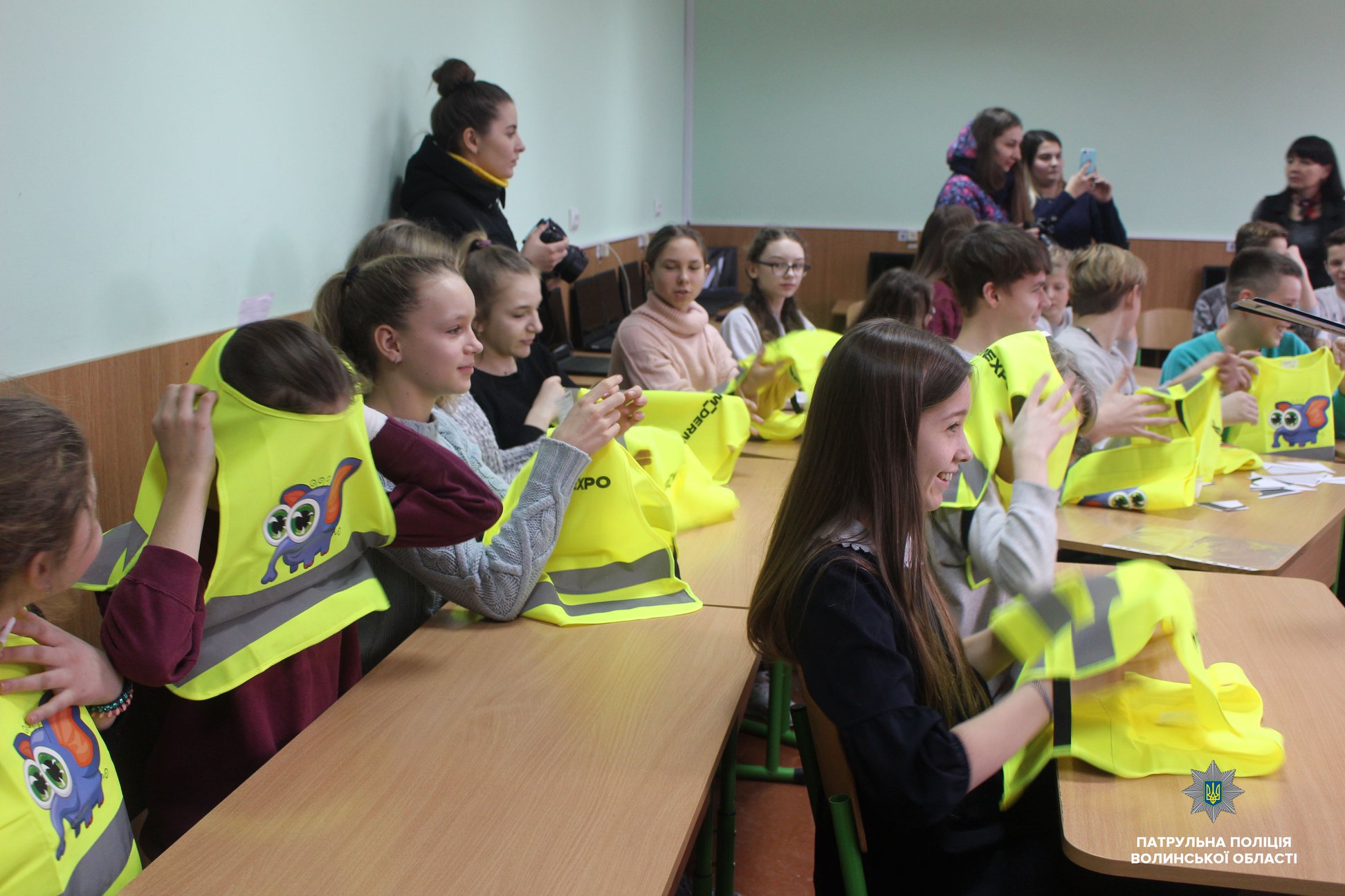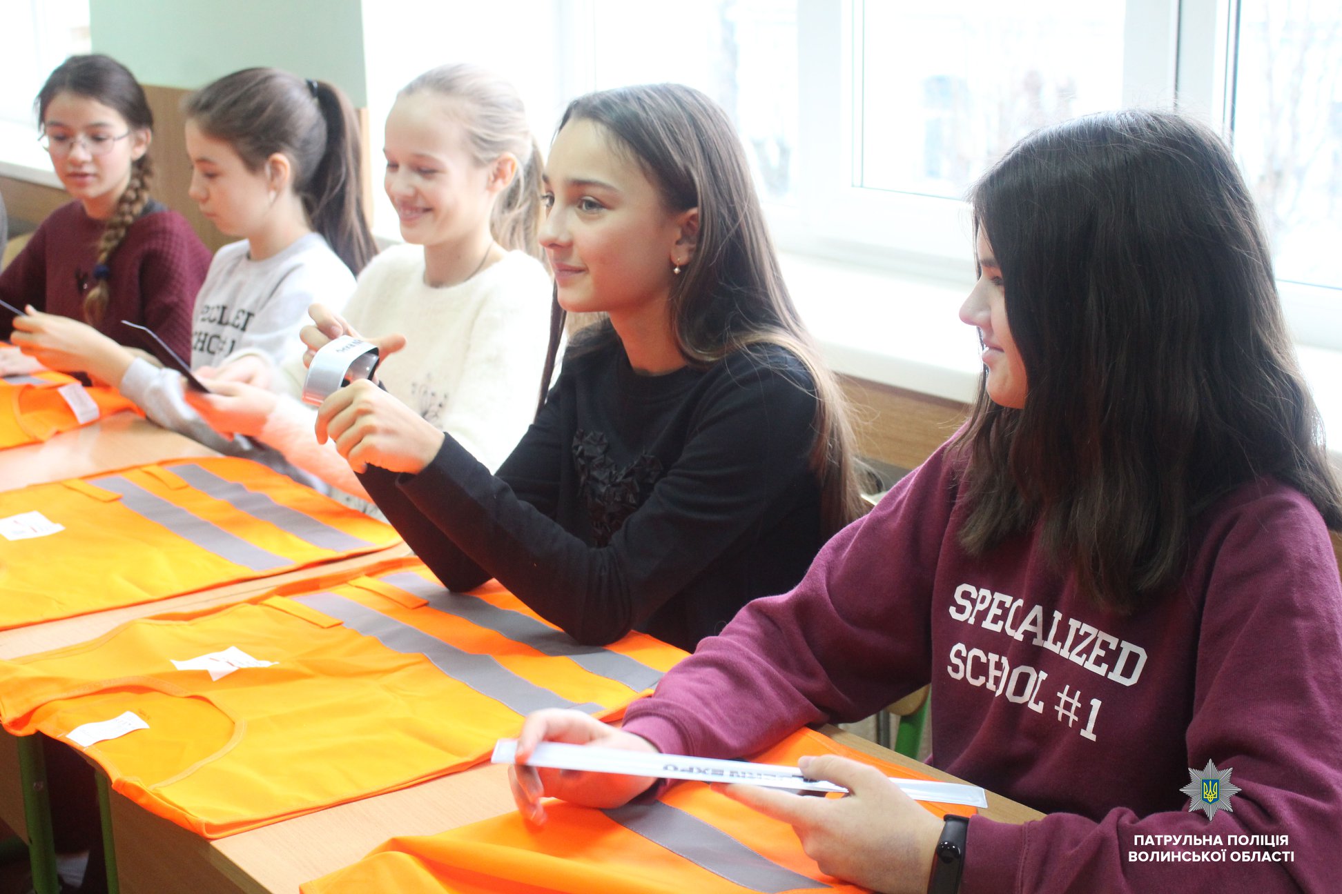 У луцькій школі № 1 відбулась акція «Світлодіти» з розповсюдження світловідбиваючих елементів серед учнів під гаслом «Стань супергероєм на дорозі – зупини ДТП силою світла» .