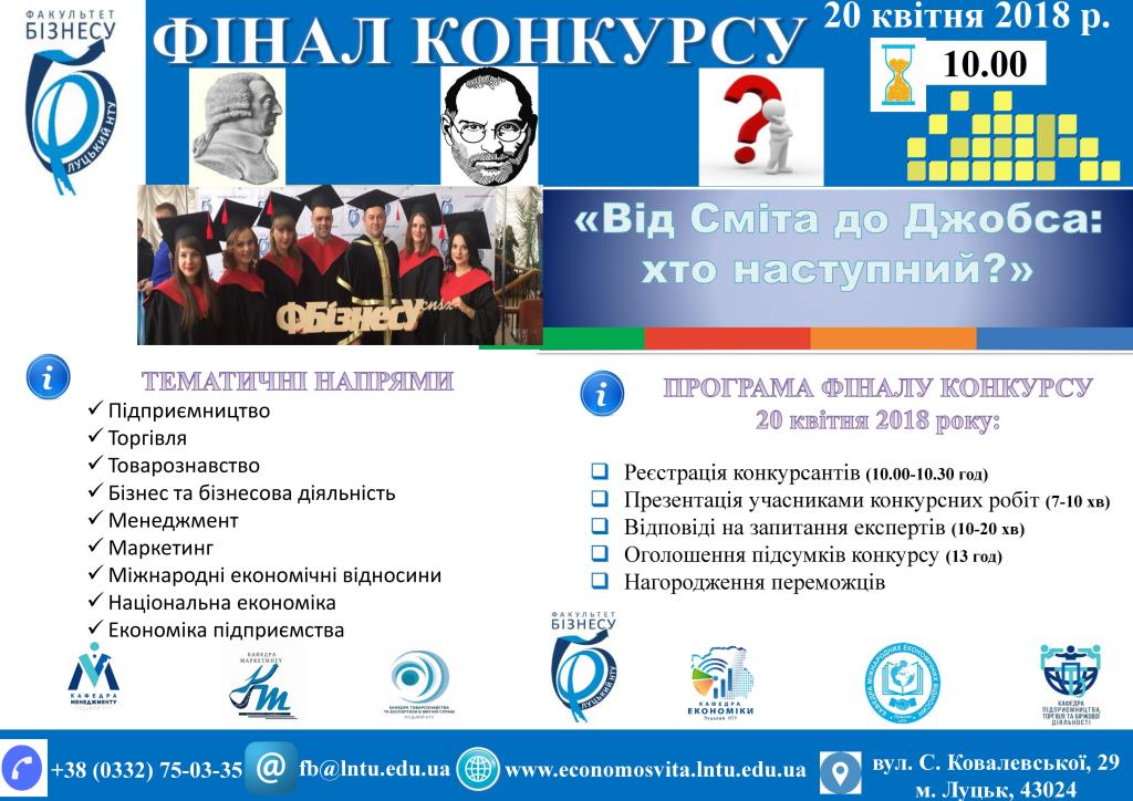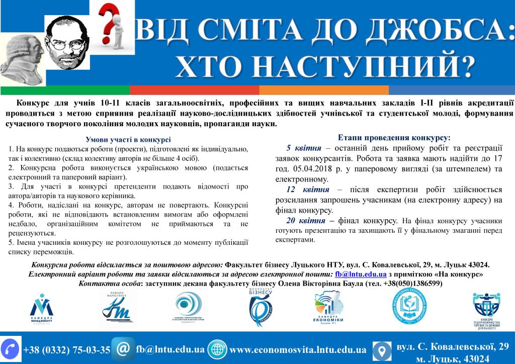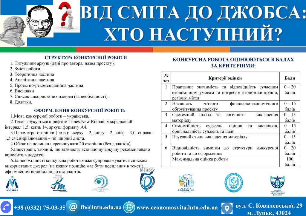 У Луцькому національному технічному університеті на факультеті бізнесу проводять конкурс наукових робіт “Від Сміта до Джобса: хто наступний?”.