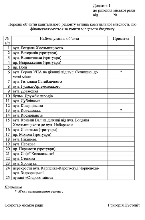 Ремонт об’єктів фінансуватиметься за кошти місцевого бюджету. Гарантійний термін планують передбачити не менше 5 років.