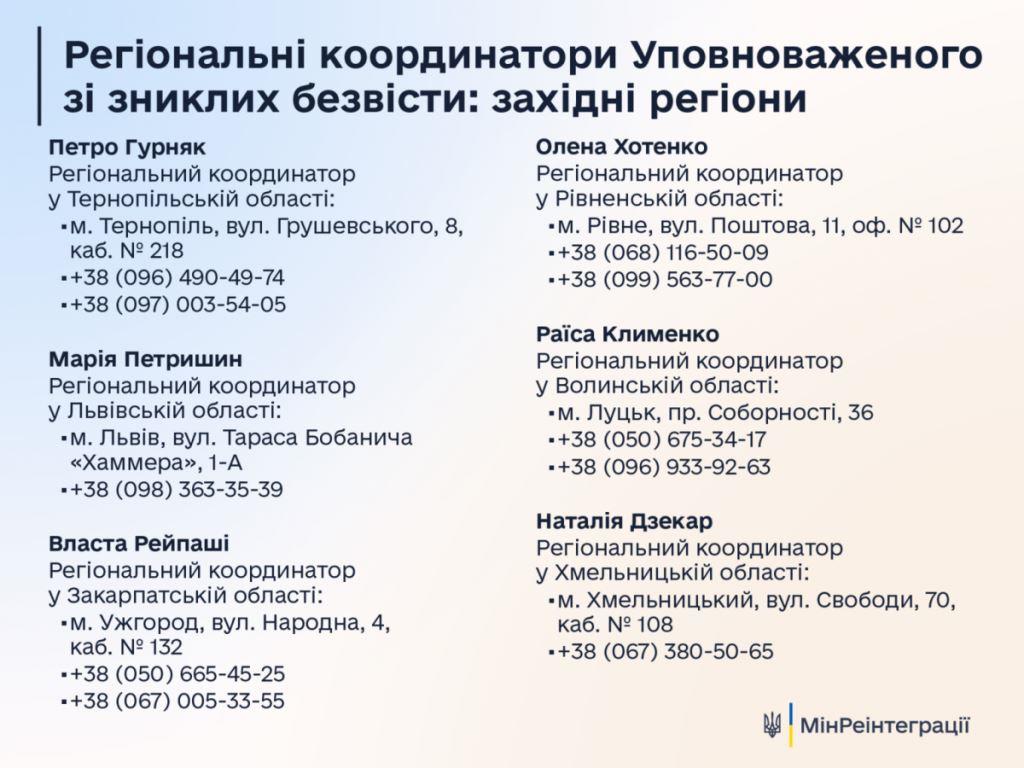 Волиняни, чиї рідні зникли безвісти на війні або потрапили в полон, можуть звернутися за допомогою до регіонального координатора Уповноваженого з питань осіб, зниклих безвісти за особливих обставин при Міністерстві з питань реінтеграції тимчасово окупованих територій України.