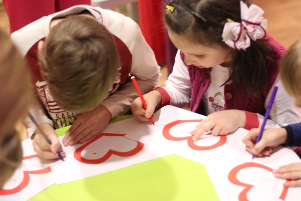 Також малюкам запропонували намалювати спільні валентинки. Аби настрій був святковим – аніматори роздавали кульки, а артисти щиро розважали малечу.