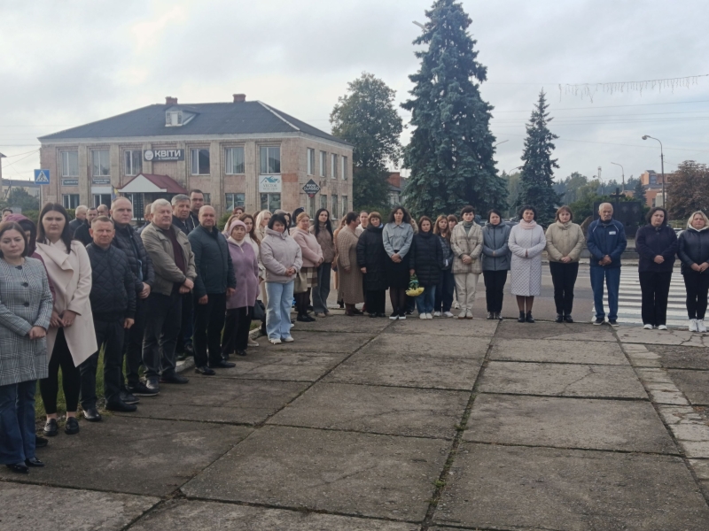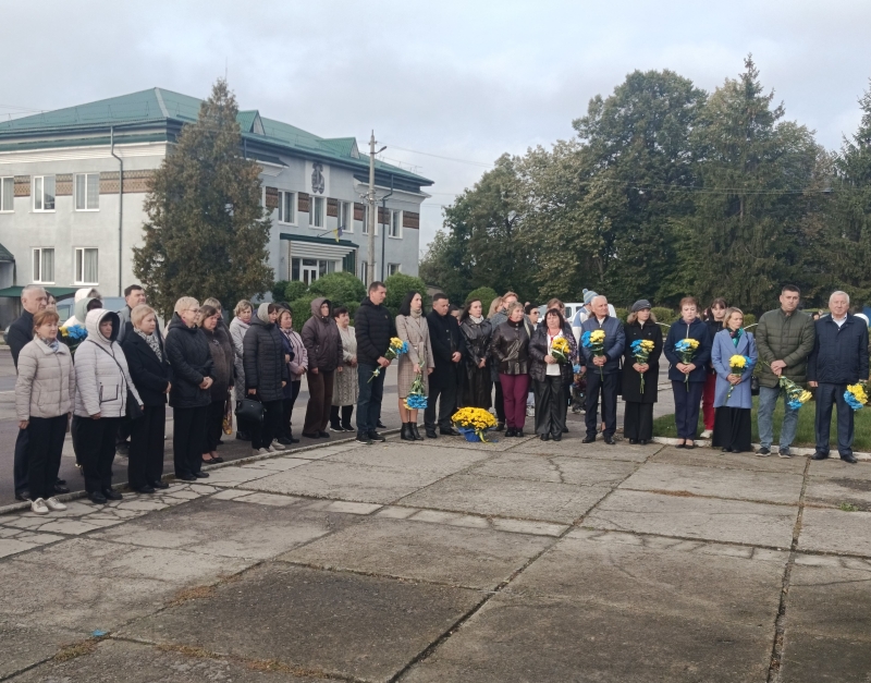 Учасники заходу вшанували полеглих Героїв хвилиною мовчання та поклали квіти до пам’ятного стенду «Назавжди в наших серцях».