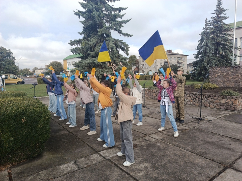 Право підняти державний прапор було надано дітям полеглих захисників – Юлії Слєсарь та Олександру Макарчуку, учням Маневицького ліцею № 2.