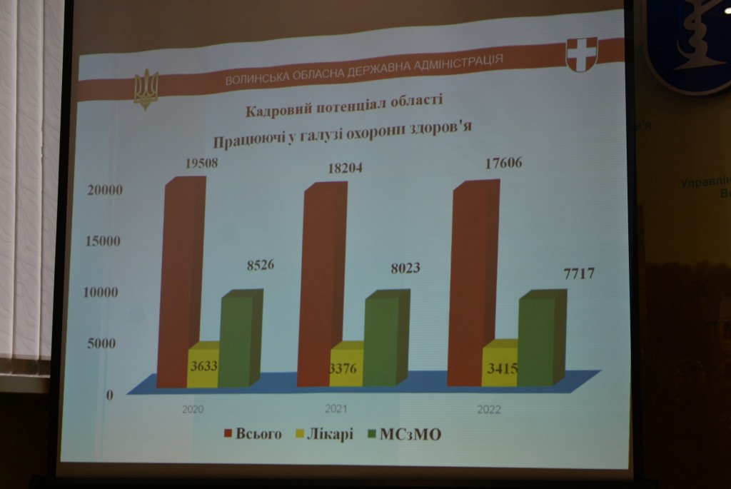 «Я часто буваю у районах та громадах, і основне питання, яке виникає – це дефіцит кадрів. У порівнянні із 2021 роком ми маємо невеликий приріст лікарів в області, оскільки ми прийняли чималу кількість внутрішньо переміщених медпрацівників, які знайшли роботу у наших закладах охорони здоров’я. Чисельність молодшого та середнього медичного персоналу дещо знизилась і на це є об’єктивні причини: виїзд за межі країни. Однак ми маємо потужний Волинський медінститут, а тому перспектива у нас, без сумніву, є», – наголосив він.