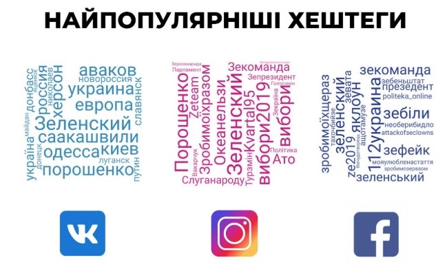 50 найпопулярніших постів про українські вибори стали більш неоднорідними у поглядах, розсіюючи критику між різними партіями. Так само українські користувачі «VK» розділилися радше на ідеологічному, аніж на політичному ґрунті. І проукраїнський, і проросійський блоки «VK» критикували теперішнього президента та всі партії, включно з «Опозиційною платформою» та «Партією Шарія», які традиційно сприймають як прихильні до Росії. В «Instagram» найпопулярніший хештег про Зеленського вжили вчетверо частіше, аніж аналогічний хештег про Порошенка (9 642 та 2 259 використань відповідно).