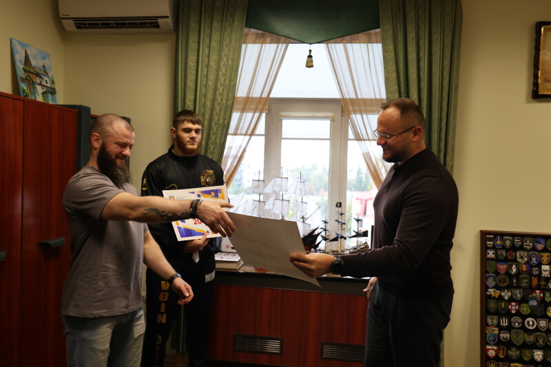 Серед присутніх – тренер клубу “Воїн”, майстер спорту міжнародного класу з самбо Андрій Зінчук та його вихованець Іван Поремчук, який став чемпіоном світу зі змішаних єдиноборств ММА серед молоді та дорослих. Змагання відбулися у Тбілісі за участю 600 спортсменів із 61-ї країни світу.