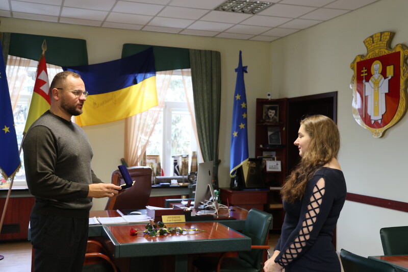 Міський голова Ігор Поліщук зустрівся з дружиною захисника Олександра Домальчука, щоб передати йому відзнаку Міністерства оборони України.