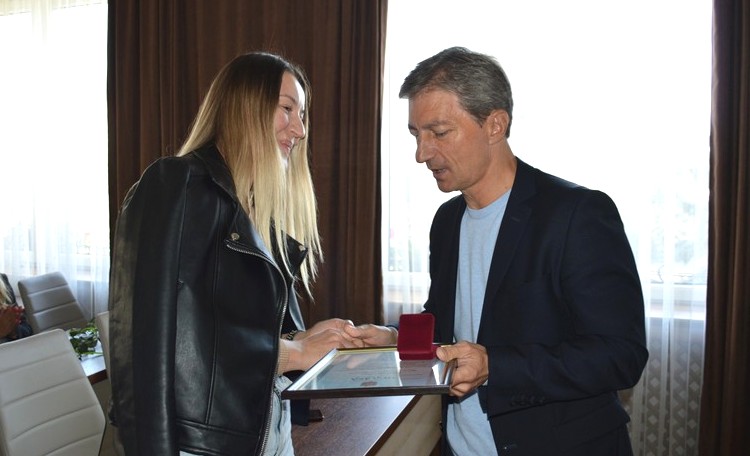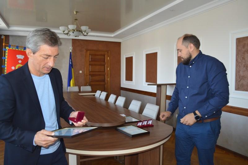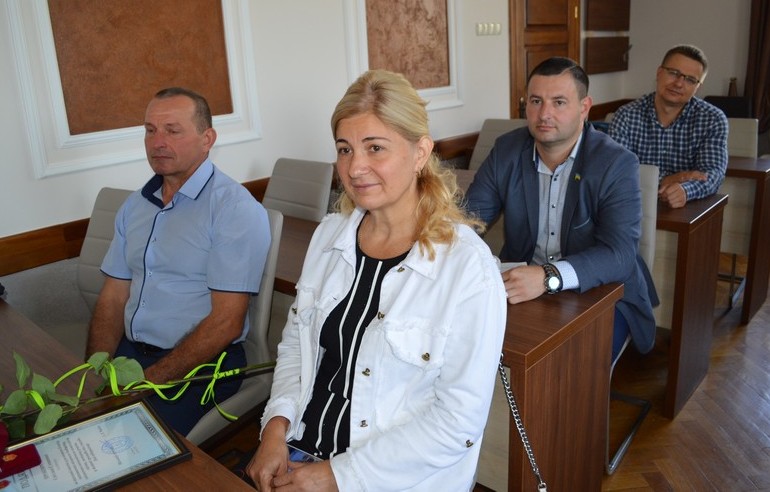 Ігор Чайка разом з секретарем ради Оксаною Багновою, начальником управління економіки і торгівлі Юрієм Кондратовичем нагородили  підприємців.