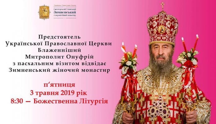 “3 травня 2019 року, в п’ятницю Світлої седмиці, Предстоятель Української Православної Церкви Блаженніший Митрополит Київський і всієї України Онуфрій, традиційно відвідає Успенський собор Святогорського Зимненського ставропігійного жіночого монастиря та очолить Божественну Літургію”, – йдеться у повідомленні.