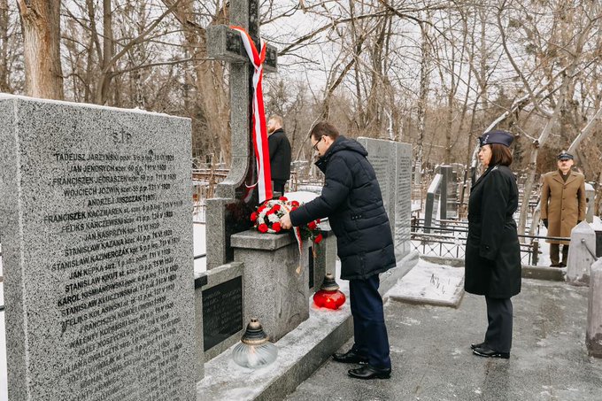 Як зазначили в канцелярії глави польського уряду, він поклав квіти до могили польських легіонерів 1920 року.