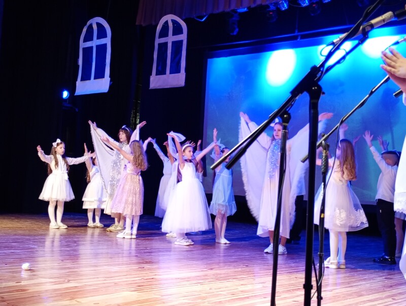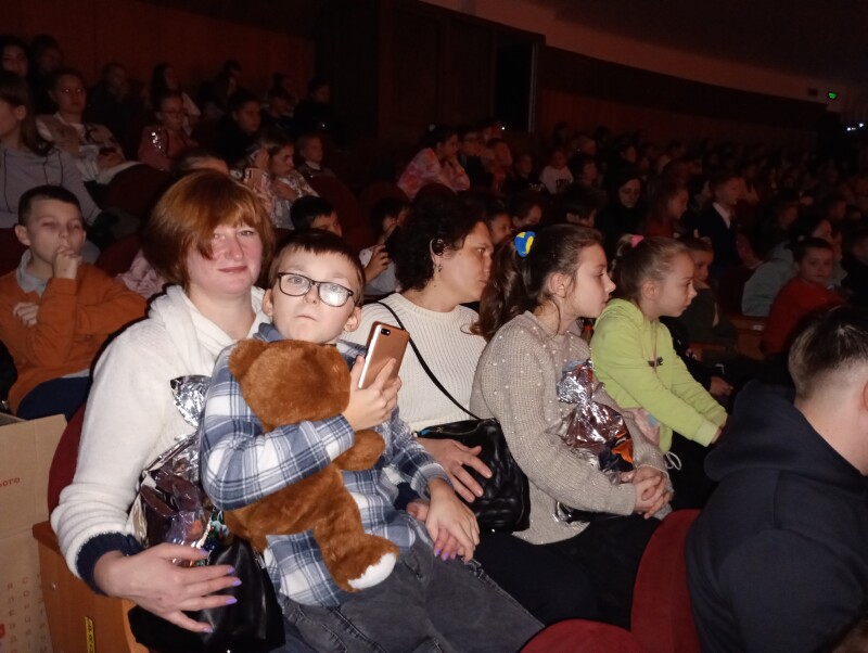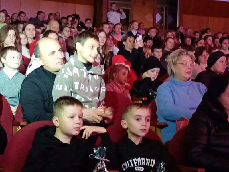 На сцені виступали вихованці Палацу учнівської молоді, оживали казкові герої та новорічно-різдвяні персонажі. Усім присутнім дітям вручили солодкі подарунки.