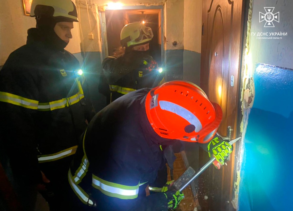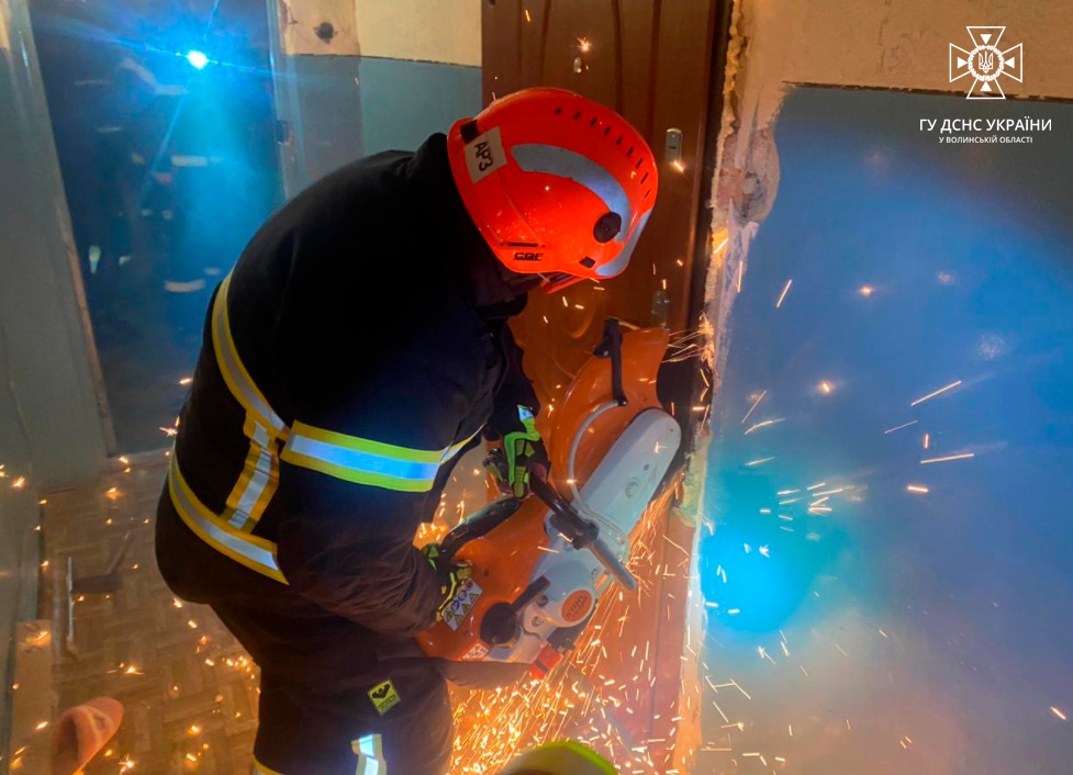 Увечері минулої доби у Луцьку рятувальники виїжджали на аварійне відкривання дверей – у квартирі на п’ятому поверсі на вулиці Митрополита Шептицького за зачиненими дверима перебувала літня жінка, яка не виходила певний час на зв’язок. Рятувальники за допомогою шанцевого інструменту й бензорізу відчинили двері й надали доступ до квартири родичів і медиків. На щастя, господиня була живою й не потребувала госпіталізації.