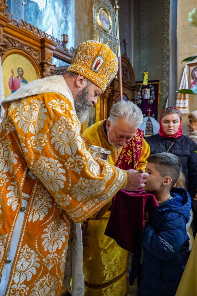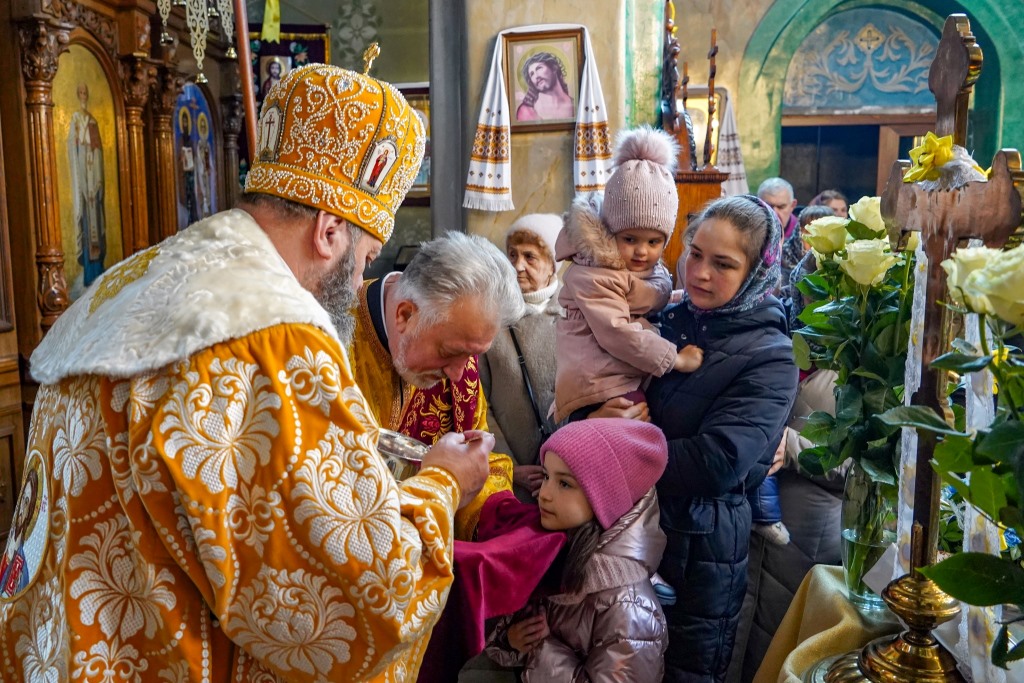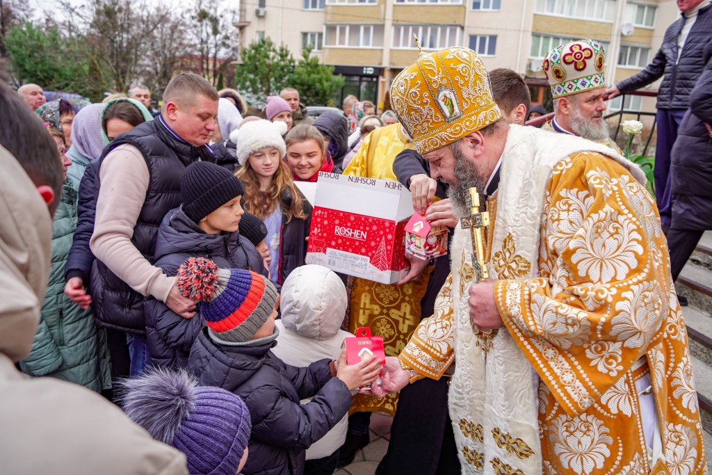 За Богослужінням із високопреосвященним молилися: канцлер єпархії протоієрей Микола Цап, міський декан протоієрей Михайло Онищук, настоятель протоієрей Микола Гой, інше духовенство. На завершення архієрей вручив ордени Святителя Миколая тезоіменинникам цього храму – о. Миколі Гою та о. Миколі Лазуці, а Великомучениці Варвари – їхнім матінкам. Також активних парафіян відзначено архієрейськими благословенними грамотами.