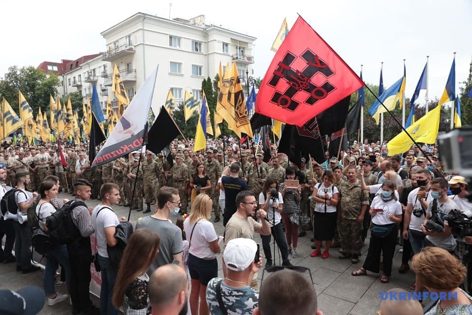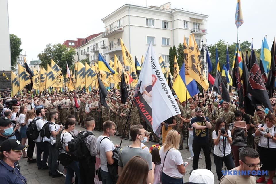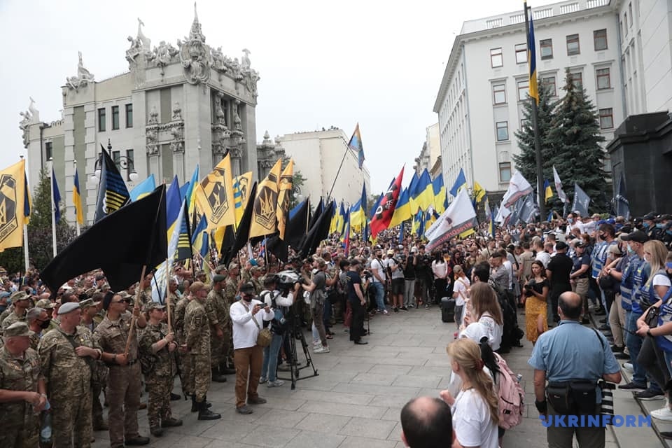 Частина учасників Маршу Незалежності прийшли під Офіс Президента і вимагали звільнити всіх підозрюваних у справі про вбивство журналіста Павла Шеремета.