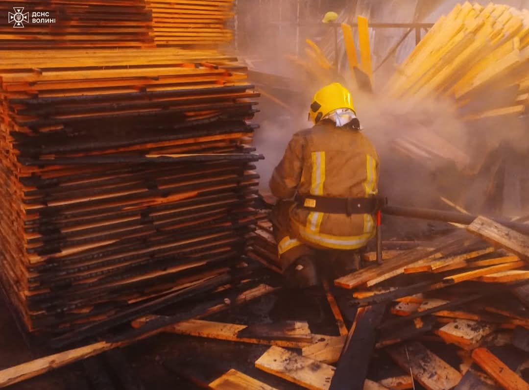 Пожежа виникла на приватній пилорамі. На місці події працювали вогнеборці 12-ї ДПРЧ селищна Любешів, 8-ї ДПРЧ міста Камінь-Каширський, а також МПО сіл Залізниця, Судче, селища Седлище Камінь-Каширського району та пожежна команда села Кухітська Воля Рівненської області.