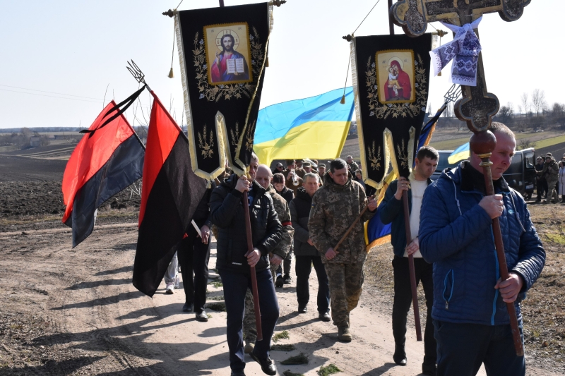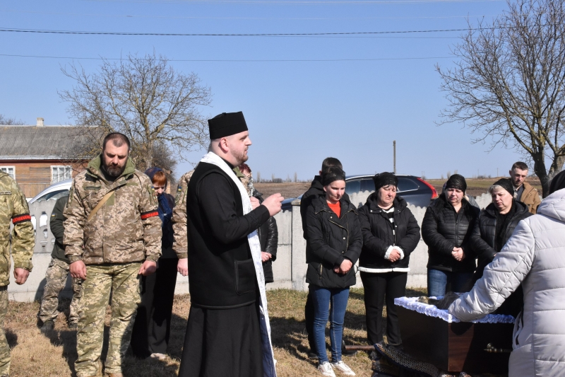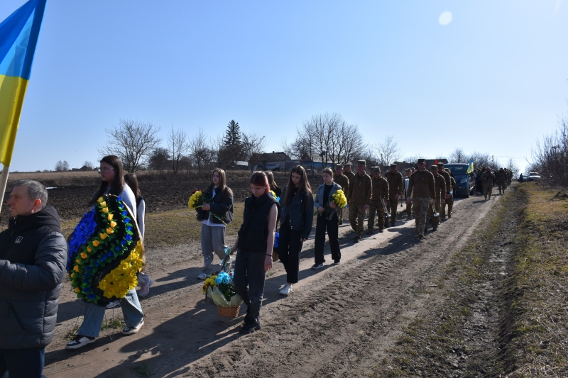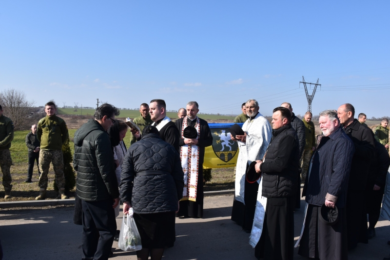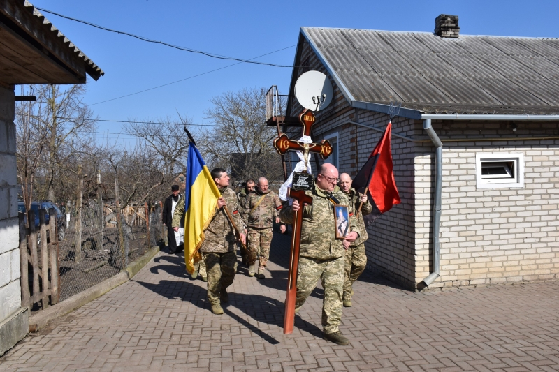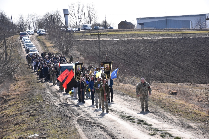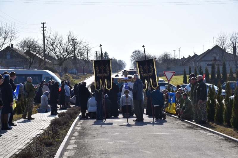 Траурна процесія розпочалася поблизу села Городище. Звідти жалобний кортеж із тілом Героя вирушив до Свято-Троїцького храму, де священнослужителі звершили чин похорону та заупокійну панахиду.