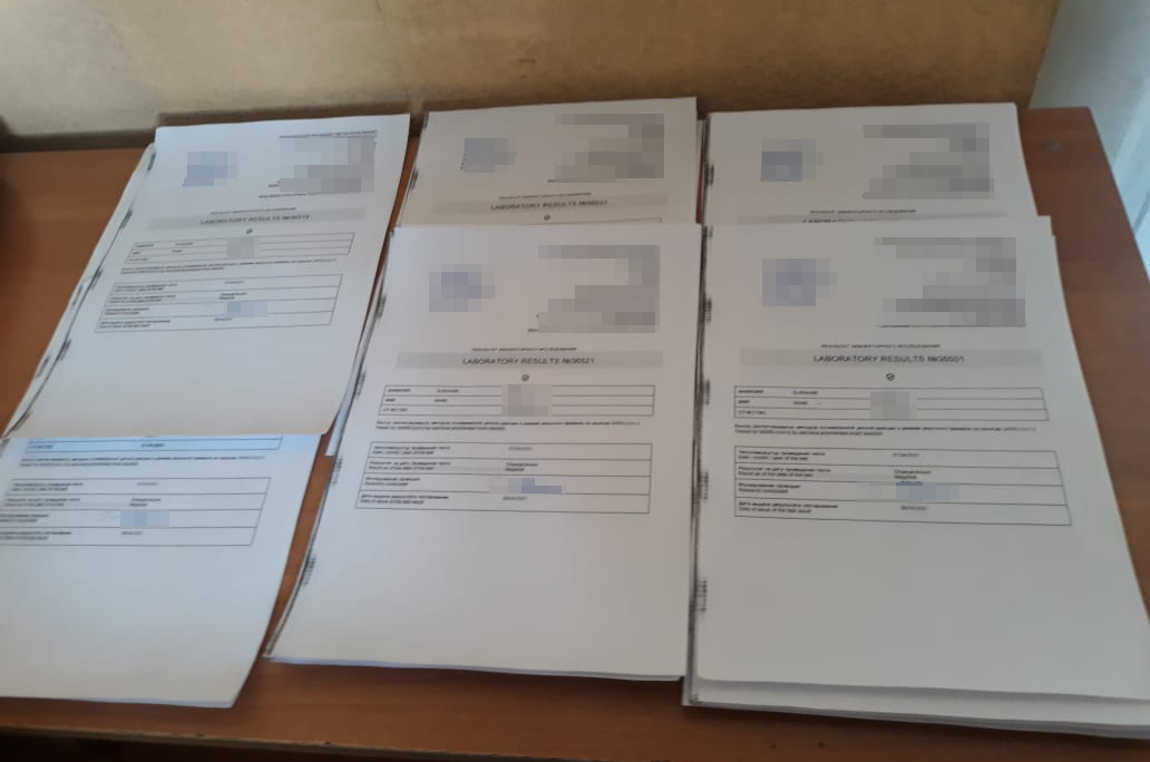 Під час перевірки пред’явлених результатів тесту на COVID-19 в інспектора прикордонного контролю виникли сумніви щодо їх дійсності. В ході більш ретельного дослідження прикордонники встановили, що бланки суттєво відрізняються від оригіналу, а також на них відсутні обов’язкові реквізити. Крім того, у кількох пасажирів охоронці кордону виявили довідки з однаковими номерами.