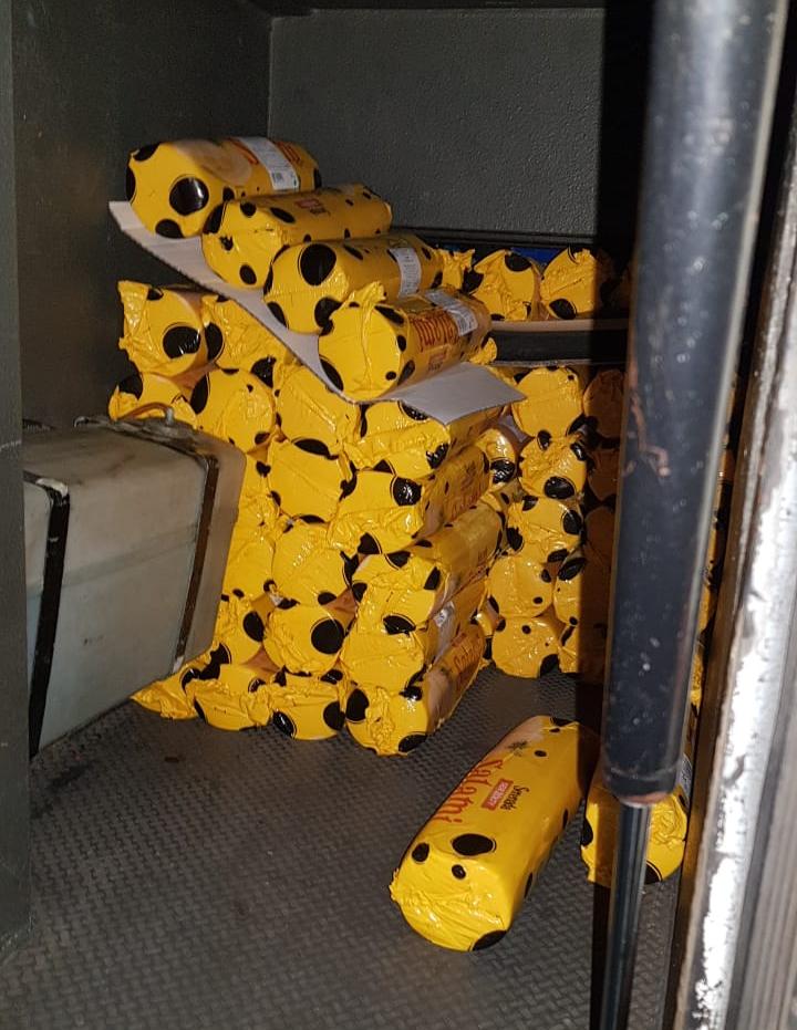На кордоні затримали рейсовий автобус, у якому виявили дві тонни продуктів. ФОТО