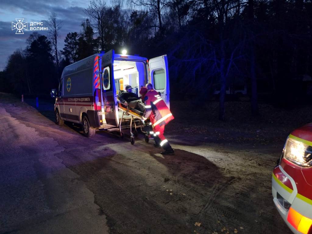 Учора, 5 листопада, о 16:50 на лінію 101 надійшло повідомлення про те, що в лісі поблизу селища Маневичі чоловік, який разом з дружиною вирушив по гриби, травмував ногу й не міг самотужки пересуватися.