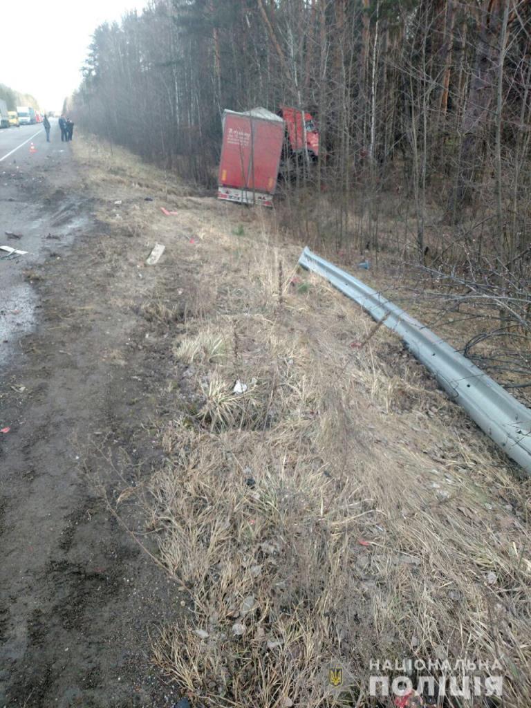 На місці події слідчо-оперативна група встановила, що водій автомобіля “ВАЗ-2104”, 46-річний уродженець Волинської області з невідомих поки причин виїхав на смугу зустрічного руху, де зіткнувся із вантажівкою “DAF”. Від удару вантажний тягач відкинуло у кювет.