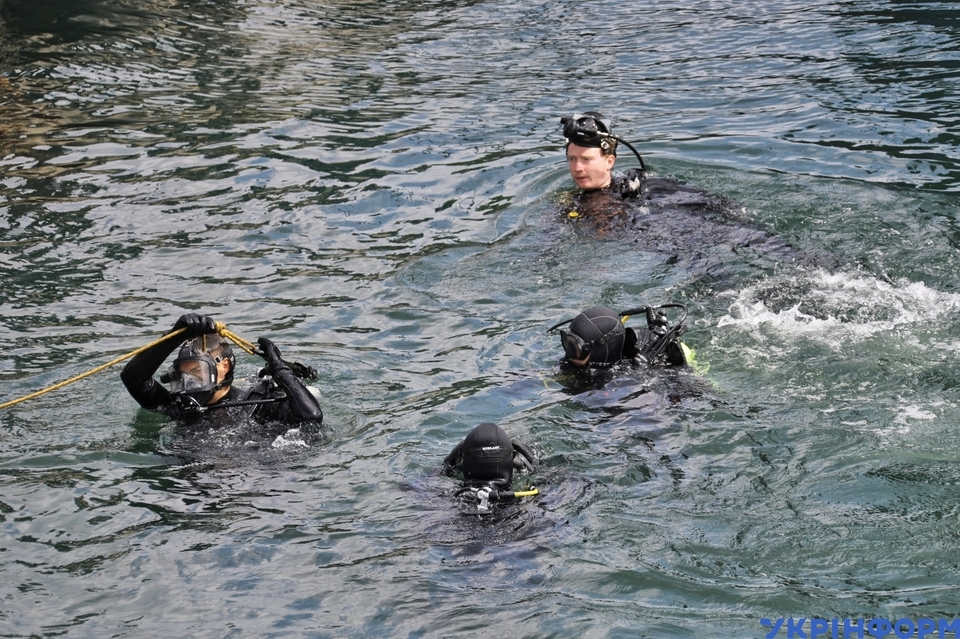 Підрозділ військових водолазів ВМС України успішно відпрацював 6 липня у Практичній гавані Одеського порту тактику розмінування та підйом з глибини аварійного судна, що зазнало нападу диверсантів.