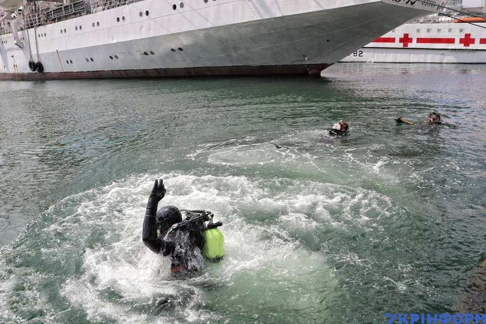 Варто зауважити, що військові моряки відпрацьовували тактику надання допомоги екіпажу судна, що зазнало нападу противника, на двох локаціях – у межах водолазних станцій № 1 та № 2 ВМС України.